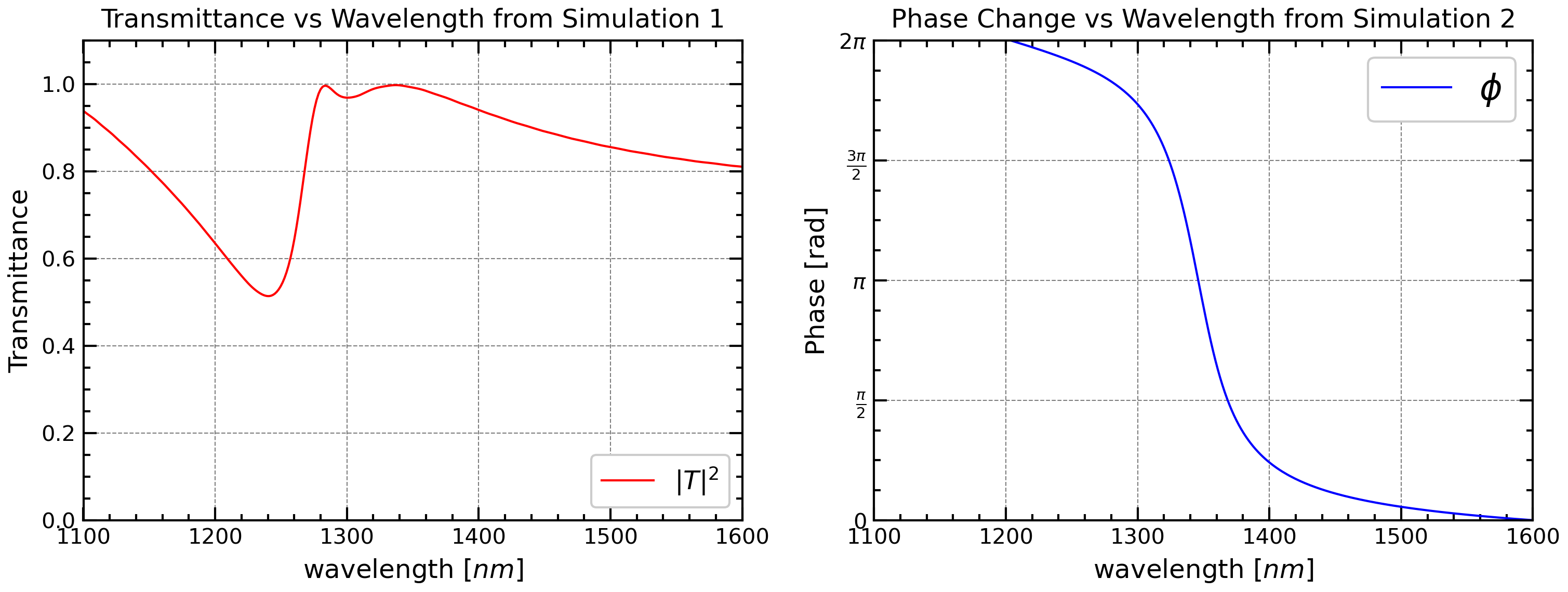 - For the transmittance and phase, two different background materials were used based in the paper, so two separate simulations were ran (with background medium as the only difference).